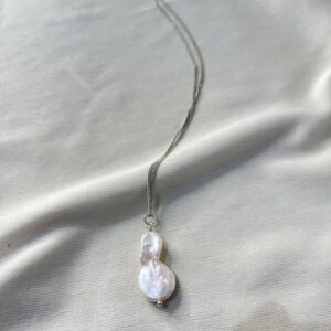 Natural White Freshwater Pearl Pendant Flat Shaped On Chain