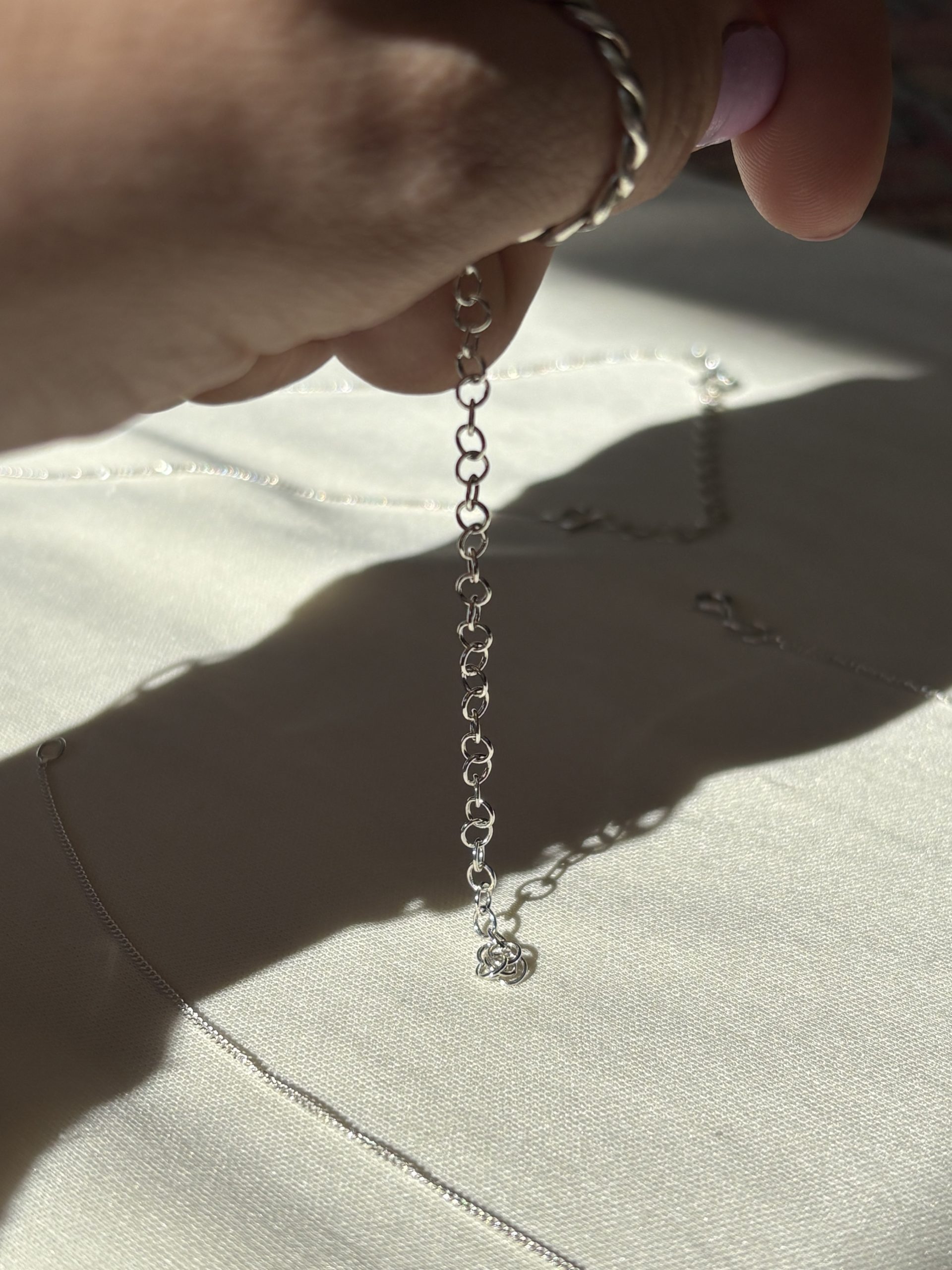 Just clip your chain’s clasp onto the extender ring, then clip the extender’s clasp onto your chain ring