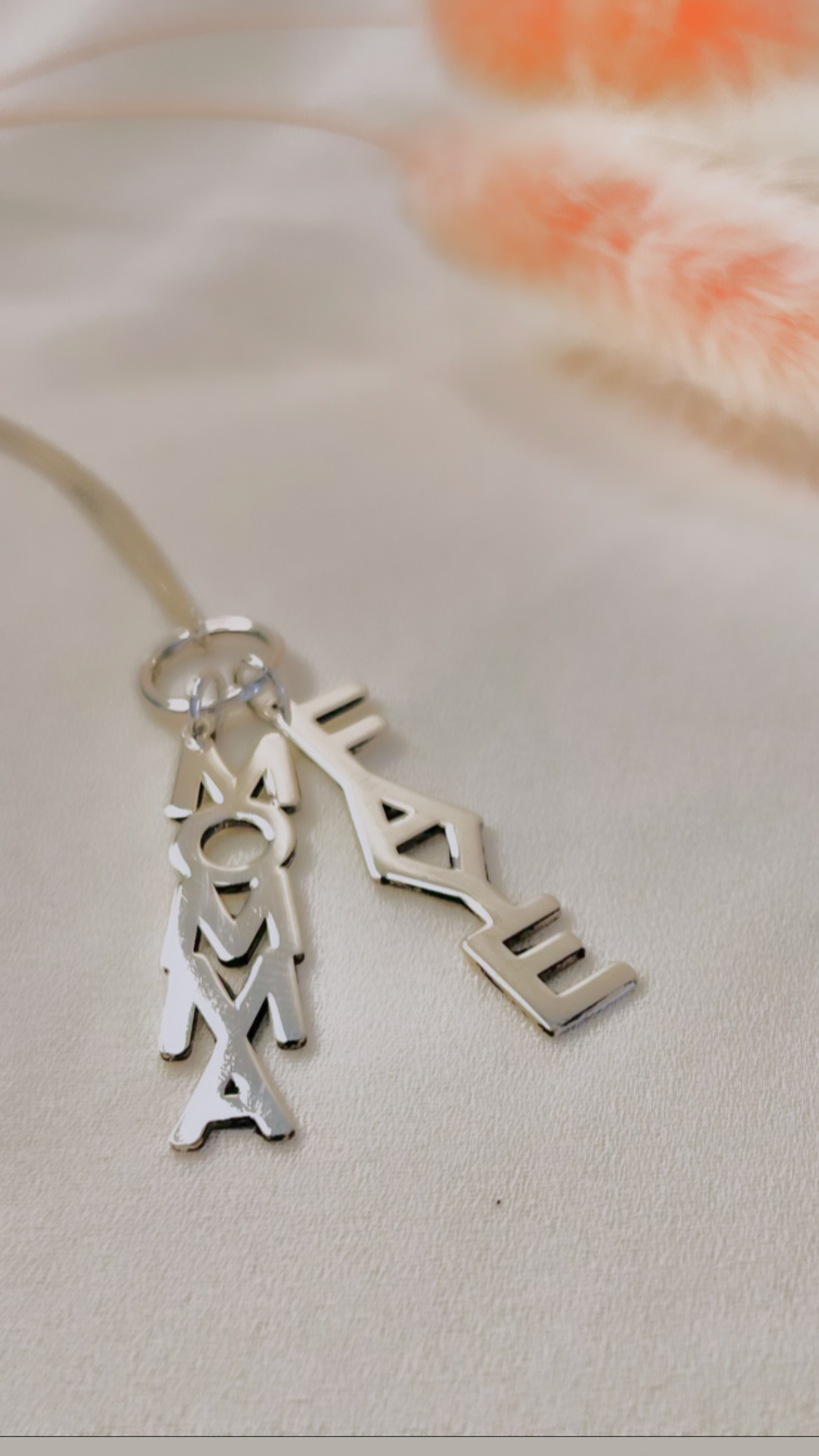 Max 5 letters per custom made pendant in your own font choice. (Size 30mm)
