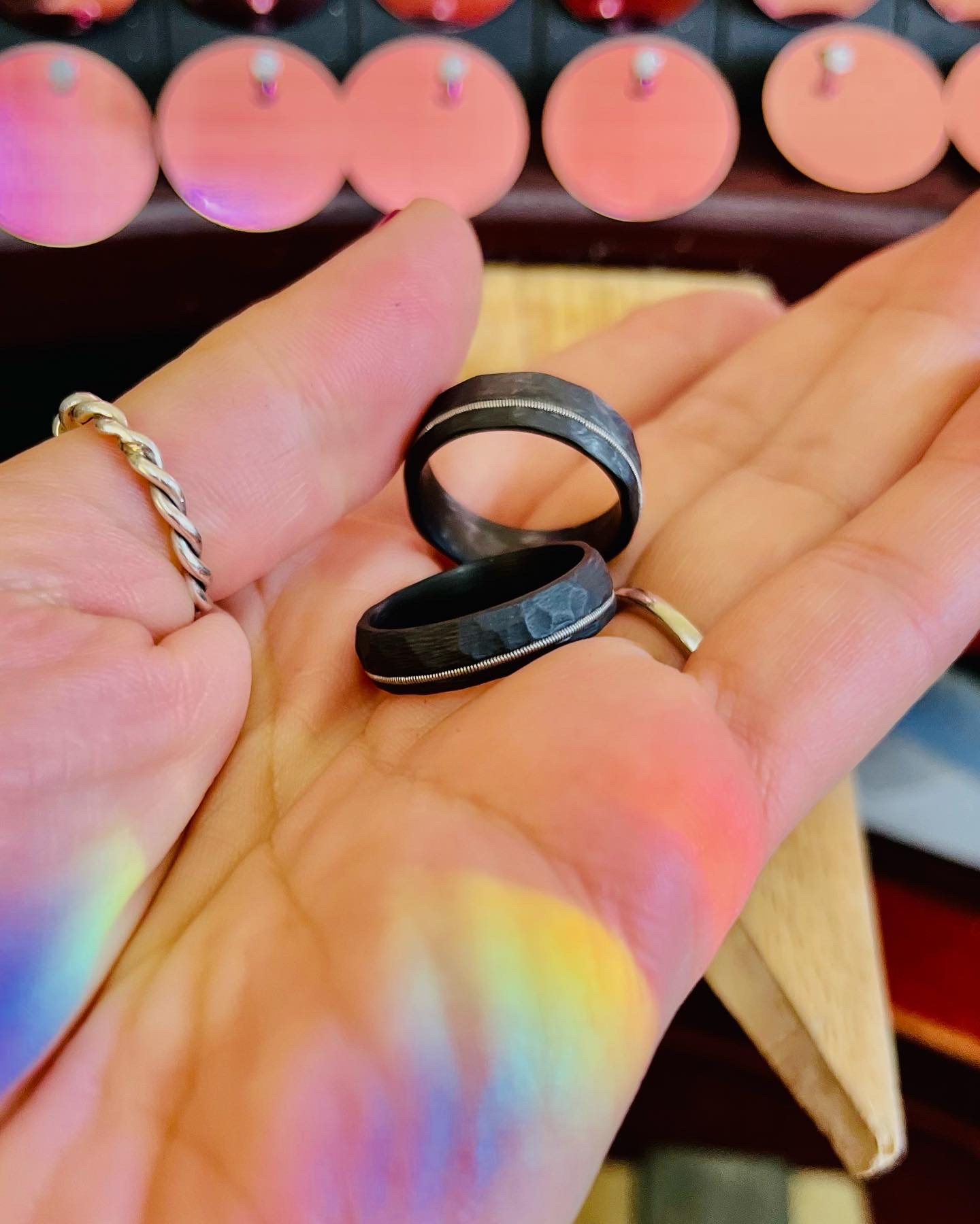 Send me a string from your favorite guitar and I will use it in your very own ring make! Choose from Carbon-fiber/Titanium/Zirconium materials.