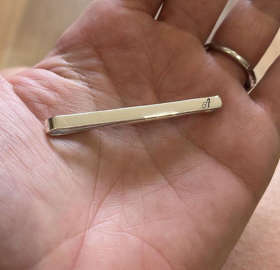 Tie clips are not only a great accessory for the grooms party ties but also a great gift. Custom made clips with engraving included. Available in Sterling Silver. Inquire for Gold Price.