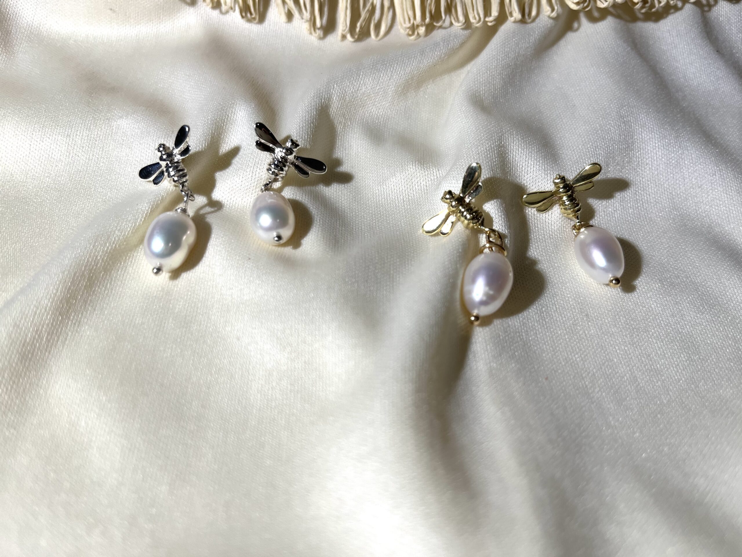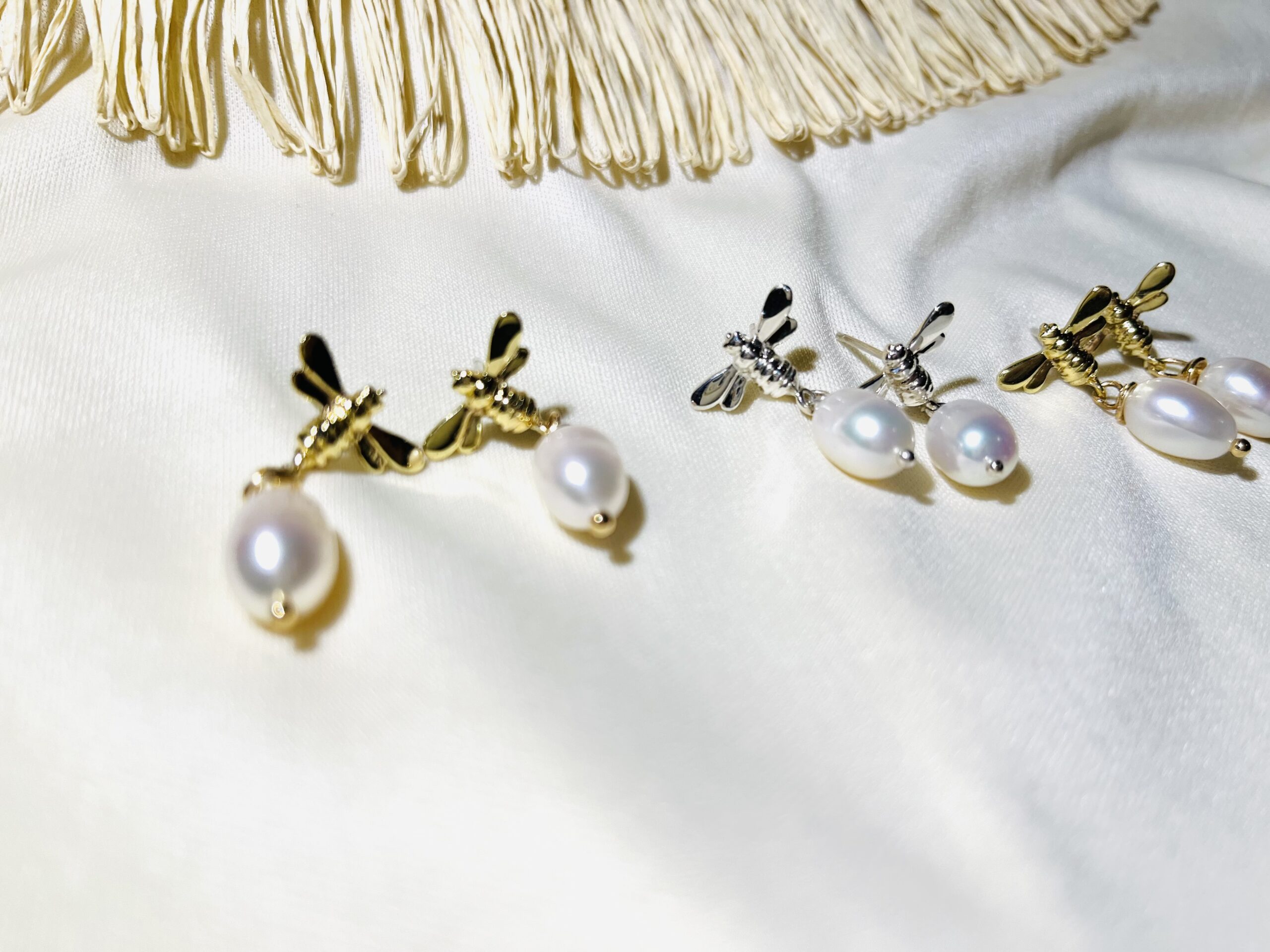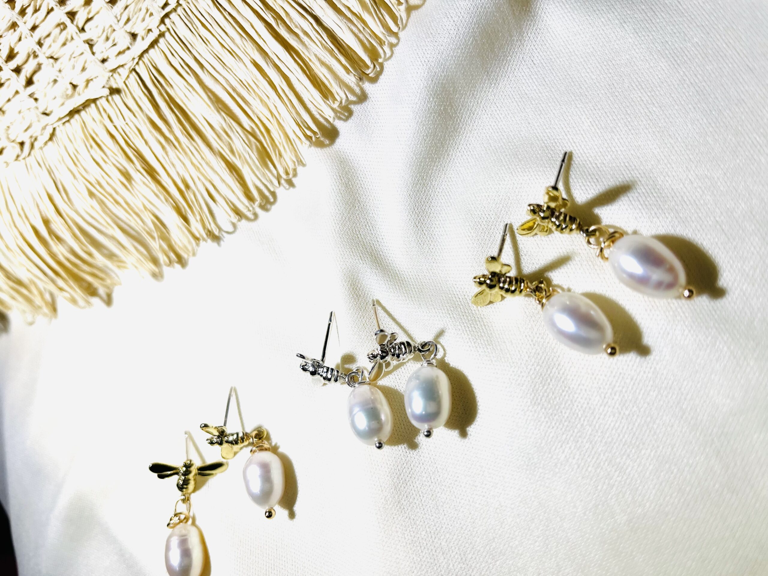 Hanging Boho Bee Pearls Studs