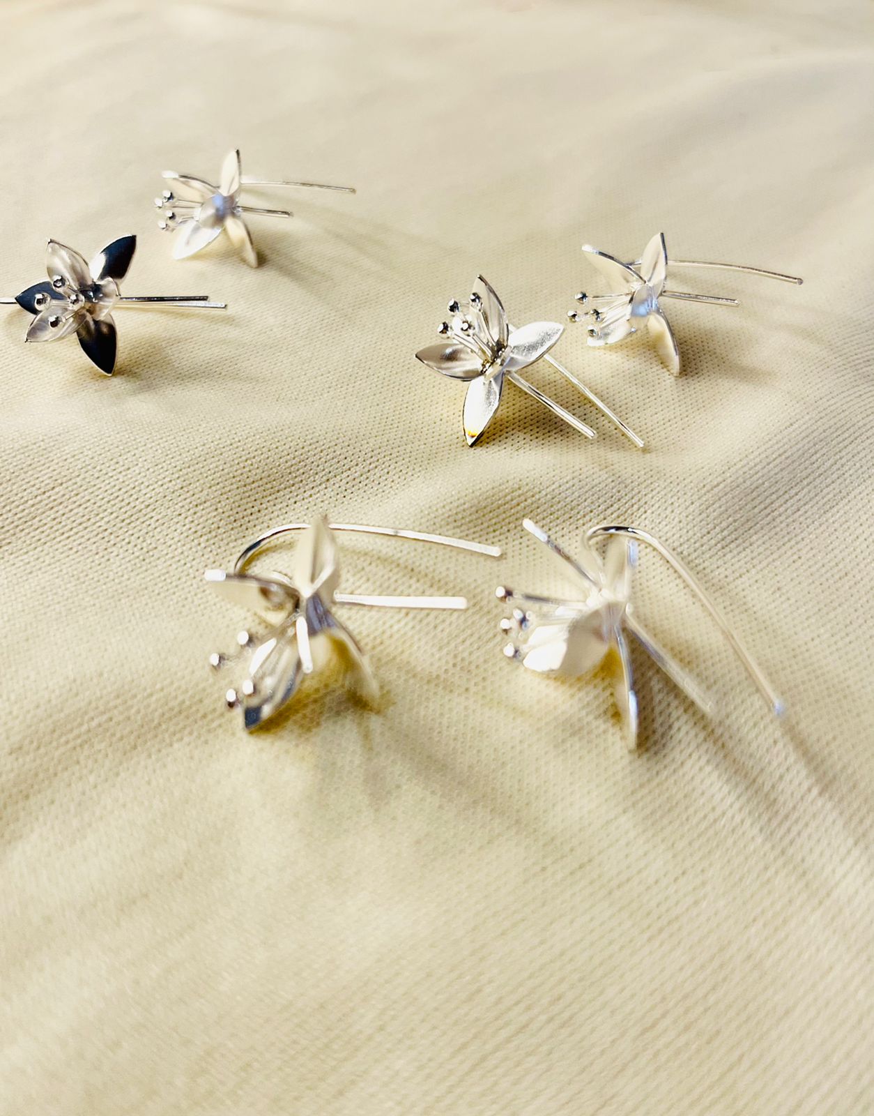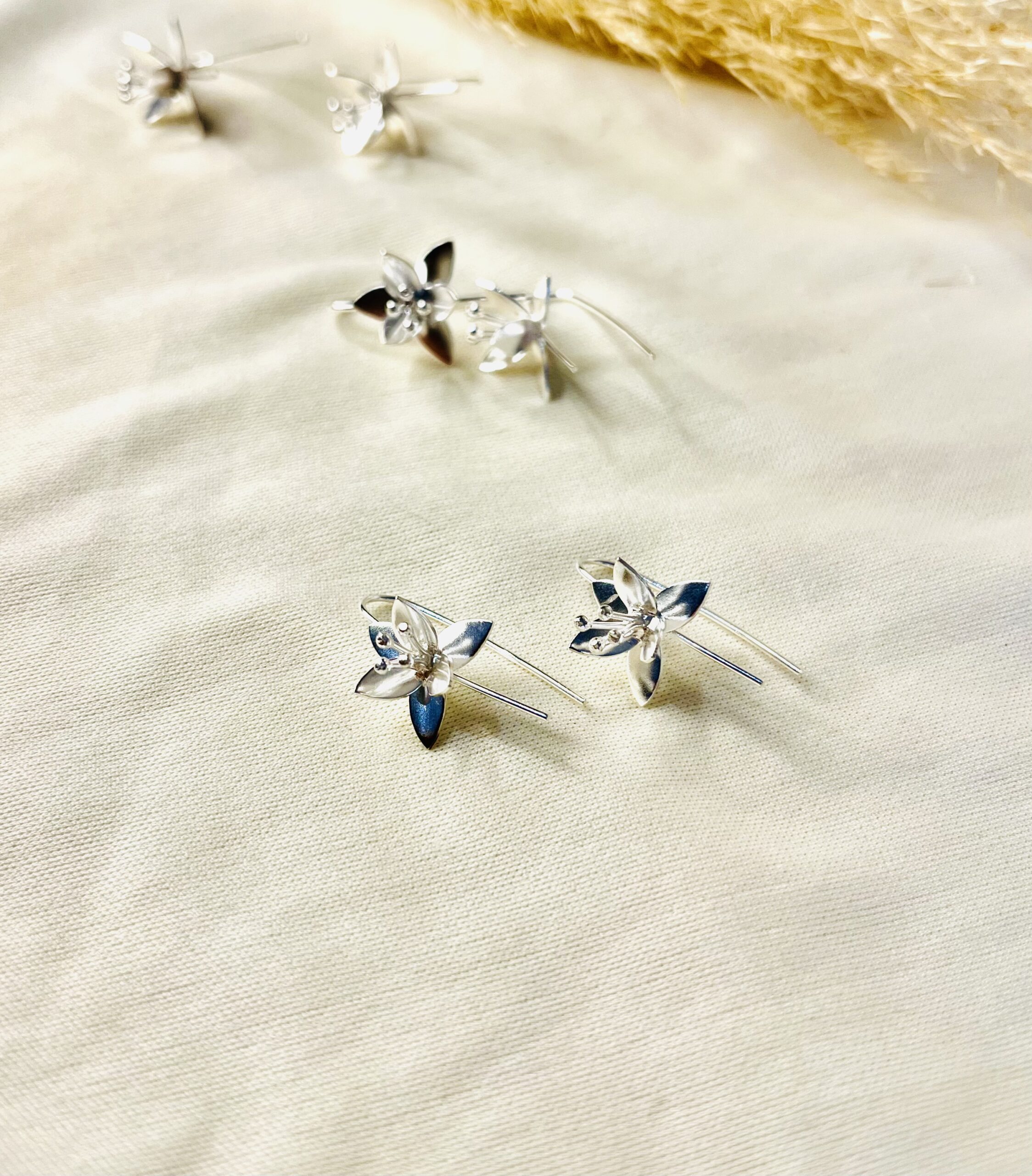Sterling Silver Drop Down Flower Earring. (20mm in size/stud less )